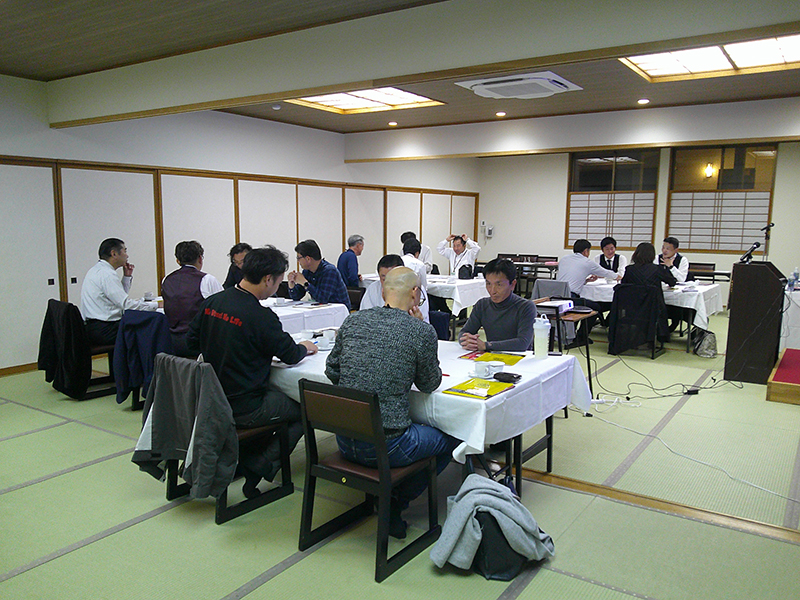 今回は「主体的マインドにする組織づくり~経営者自らが影響を与え、人を動かす~」が例会のテーマ。役割分担の明確化が社員教育に繋がる事、自ら学んだリーダーシップを発揮し組織作りやスタッフとの情報を共有する事が核であり、やはりそこには私たち経営者の柱である経営指針がありました。経営指針を創った事で他社の指針も気になる事に共感し、またグループ店舗でのディスカッションでも経営指針が核となるとおっしゃっていた事に経営指針の大切さを改めて勉強させて頂きました。コロナ禍ではマスメディアによる偏向報道で全国的な批判を浴び、大変ご苦労されたそうです。例会後半ではゴルフボールを使ったストレッチをご教授頂き、会場のあちらこちらから「効く~!」や「イテテッ!」など例会らしからぬ声が聞こえ、いつもとは一風変わった例会が開催できた事に大成功を感じました。例会でのグループ討論に続き懇親会でも岩佐さんへの質問が飛び交い、時間をオーバーしてしまう程大盛況の中終了となりました。